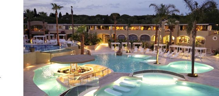 External flooring and swimming pool shaped border in limestone Forte Village – Italy